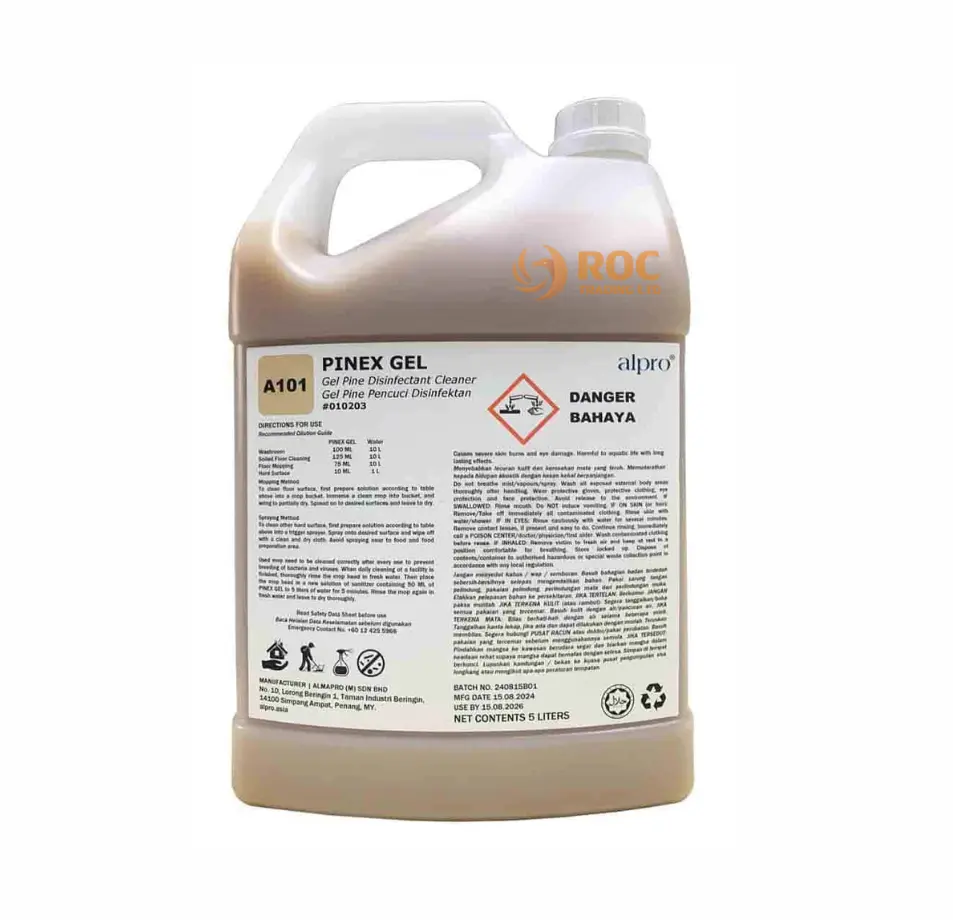 - Alpro A101 Pinex Gel là chất tẩy rửa đa mục đích. Sản phẩm là sự kết hợp tuyệt vời giữa khả năng tẩy rửa mạnh mẽ và tính sát khuẩn đặc trưng. Công thức sản phẩm gồm các nguyên liệu chất lượng cao và có độ phân huỷ sinh học an toàn với môi trường.