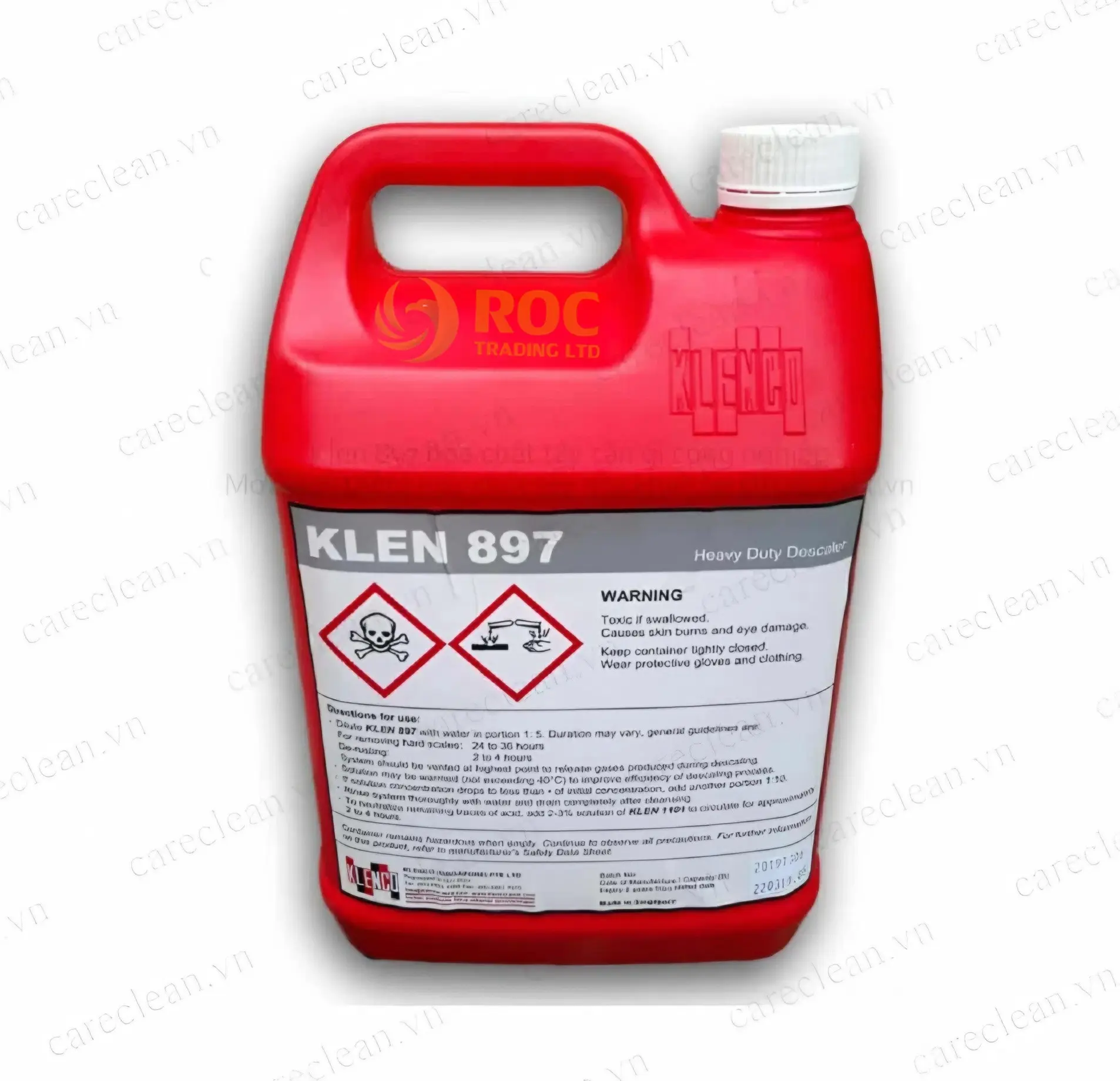 - Sản phẩm của nhà sản xuất hóa chất tẩy klen Pte xuất xứ Singapore, quy cách đóng gói Can 5 L, Thùng 20 L.Klen 897 Klenco Heavy Duty Descaler hiệu quả cao trong công tác vệ sinh bảo trì tẩy cặn của: